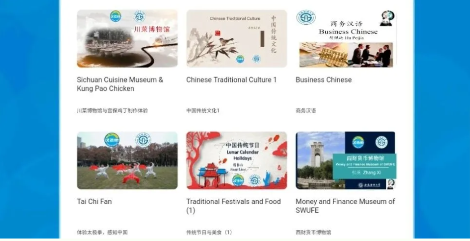 402cc永利官网“汉语桥”线上项目共分为零基础班与中级班2个层次。项目组经过两个多月的前期准备,充分考虑全球疫情背景下教学的限制和需求,首次将“中文+”语言学习、成都特色文化体验和多维互动交流相结合,为来自14个国家的海外学员精心打造“云观天府,纵览西财”精品课程。学习营采用“云课堂”的创新形式,借助中文联盟、“汉语桥”官网、企业微信等平台,采用实时授课和录播跟学的方式,搭配在线辅导、视频赏析、互动答疑等环节,为海外学员提供了《通用汉语》《中医文化》《书法入门》《古蜀国、烟火气与现代感的成都》《川菜博物馆与川味制作》《探寻青城,感悟道家》《与熊猫“滚滚”的亲密接触》和《同唱一首歌》等25门课程。