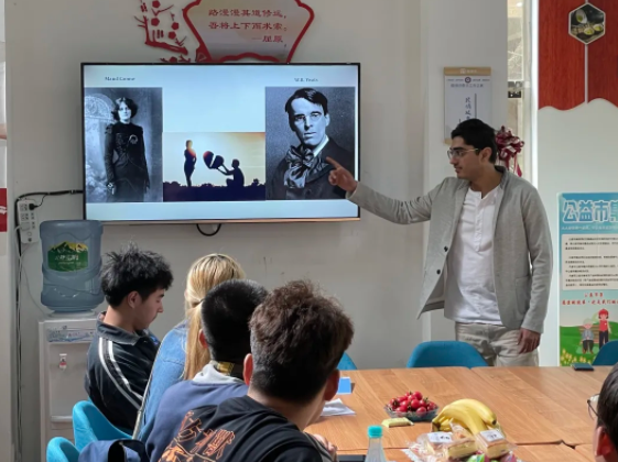 下午,我们留学生前往了金泉社区参加读书活动,与社区居民、农职院大学生共同学习、鉴赏、朗读各自准备的诗词摘抄。在分享各自的读书心得外,大家还一起讨论了家乡美食和城市风景。