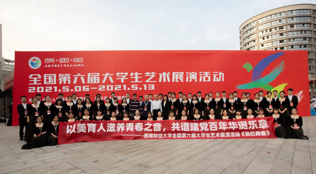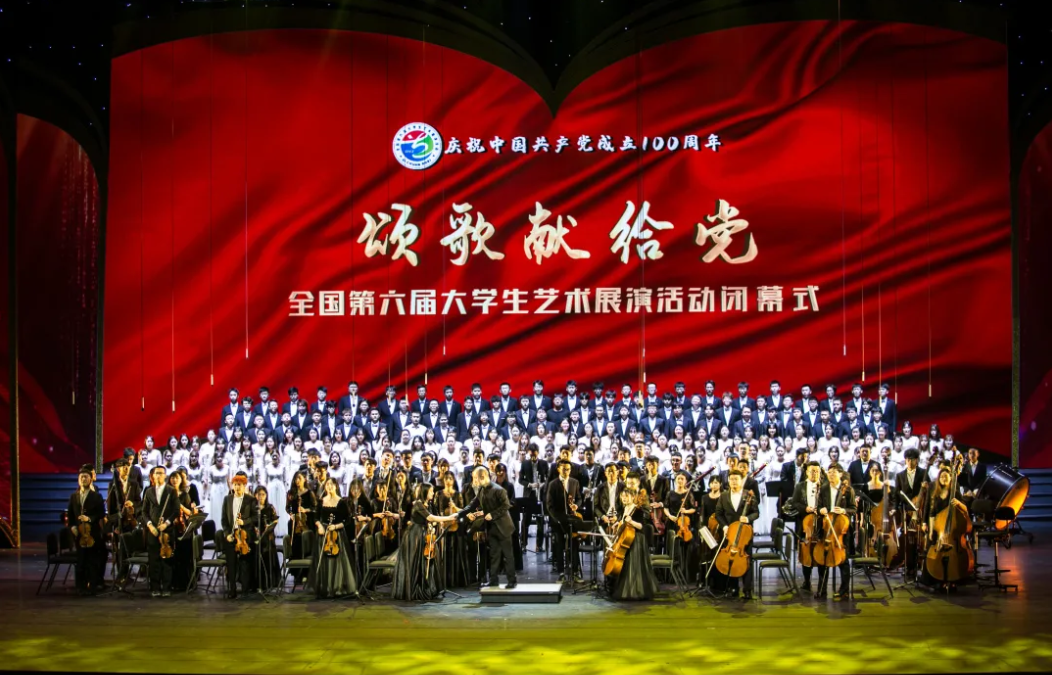 全国第六届大学生艺术展演活动由教育部、四川省人民政府共同主办,是目前国内规格最高、规模最大、影响最广的大学生艺术盛会,每三年举办一次。本届大学生艺术展演正值中国共产党成立100周年,全国198所高校264支代表队的6800余名参演师生齐聚成都,用多种多样的形式书写着丰富多彩的青春,把最新、最具特色的全国美育改革发展成果集中展现在公众面前,颂歌献给党、奋进新时代,生动展现了新一代青年大学生昂扬向上的精神风貌。活动为期8天,集中展演221个艺术节目,43个大学生艺术实践工作坊,96篇高校美育改革创新优秀案例,充分展示了在国家美育工作的开展下,全国各高校艺术氛围的蓬勃发展。