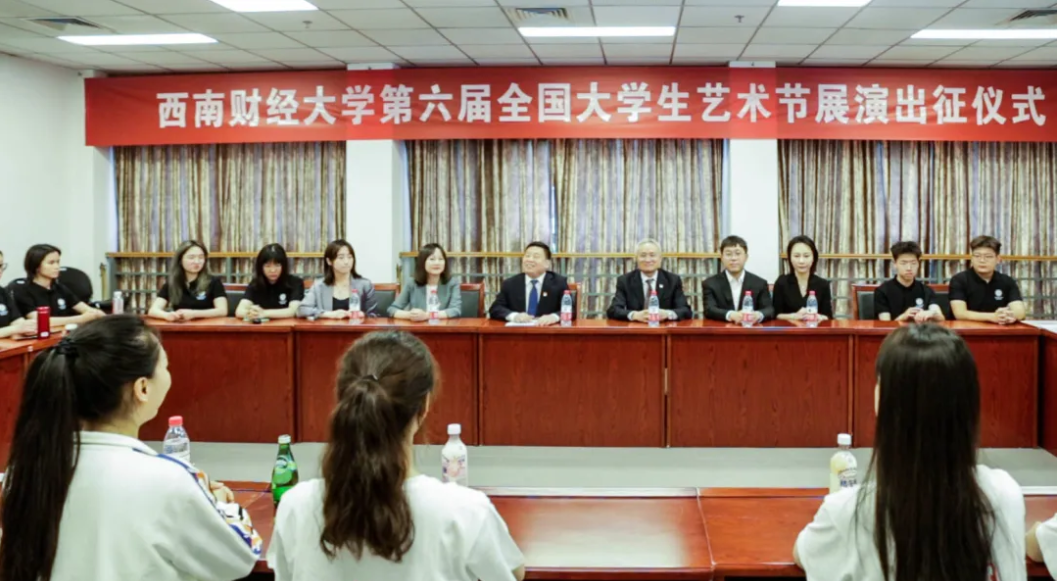 参演前夕,党委书记赵德武亲切慰问展演师生,并殷切鼓励参赛师生赛出风格、赛出水平,展示出西财学子较好的艺术水平和综合素质。展演期间,学校党委副书记曾道荣、副校长尹庆双前往活动现场看望师生,为师生助阵加油,与参演师生交流心得、畅谈收获。