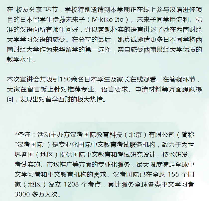 2022年HSK留学中国线上宣讲会(日本站)顺利举行