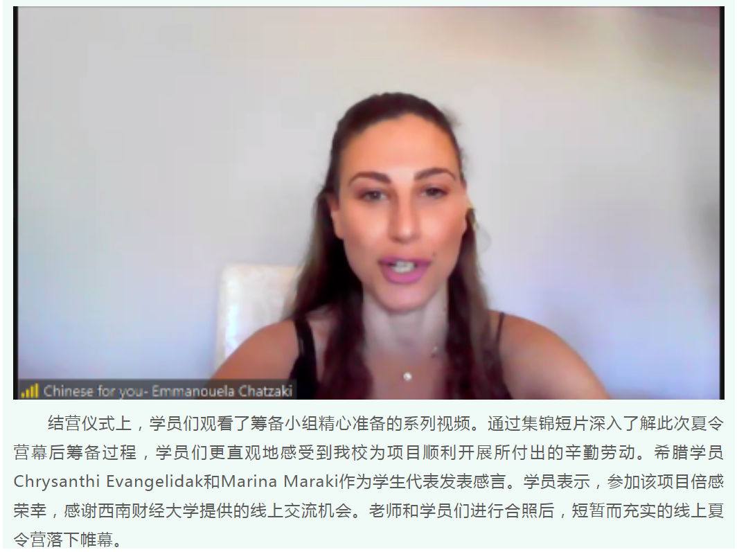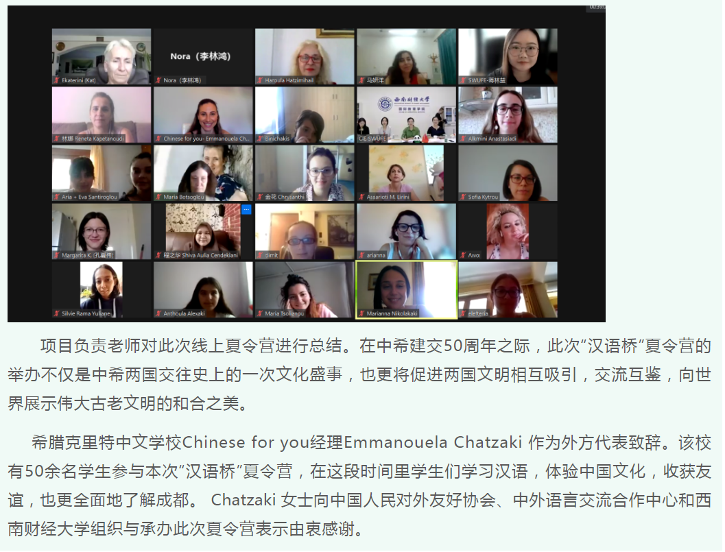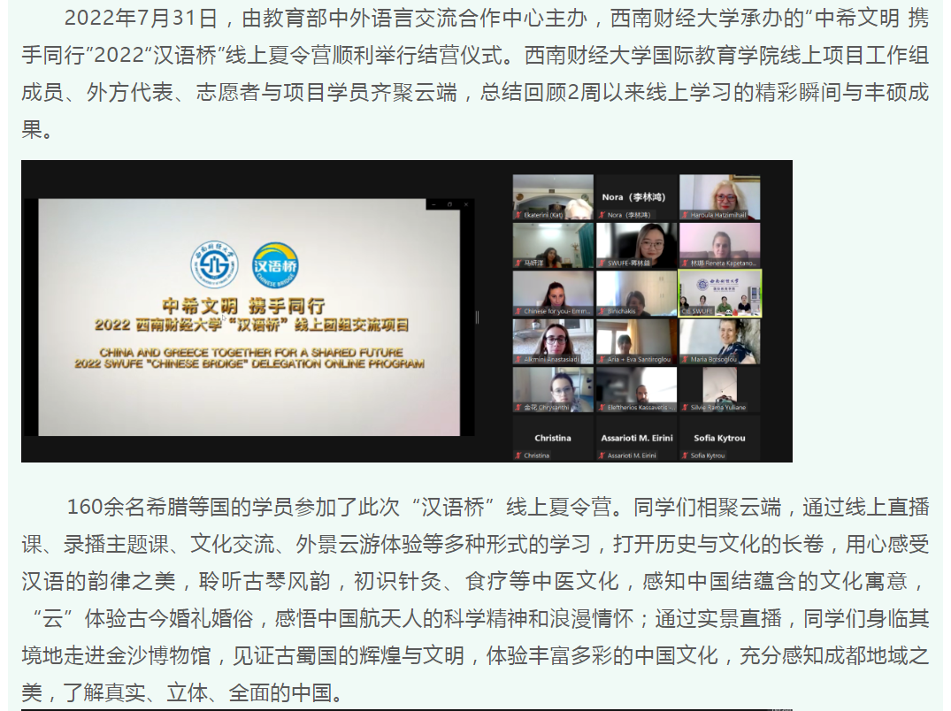 402cc永利官网“中希文明 携手同行”2022“汉语桥”线上夏令营顺利结营