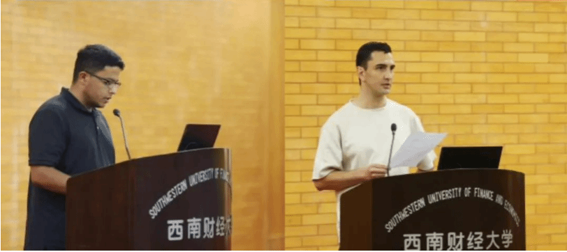 来自也门的在校生代表萨利SALAH SULTAN SALEH AL-SHARAB在发言中回顾了自己在西财的学习和成长经历。他鼓励同学们重视学业,将学业始终放在第一位,同时也要积极参与学校的各项文体活动,享受丰富多彩的校园生活,利用课余时间多出去走一走,看一看,去探索成都这座城市独有的美丽与乐趣。最后,他衷心祝愿大家学业进步,收获满满,创造属于自己的精彩人生。