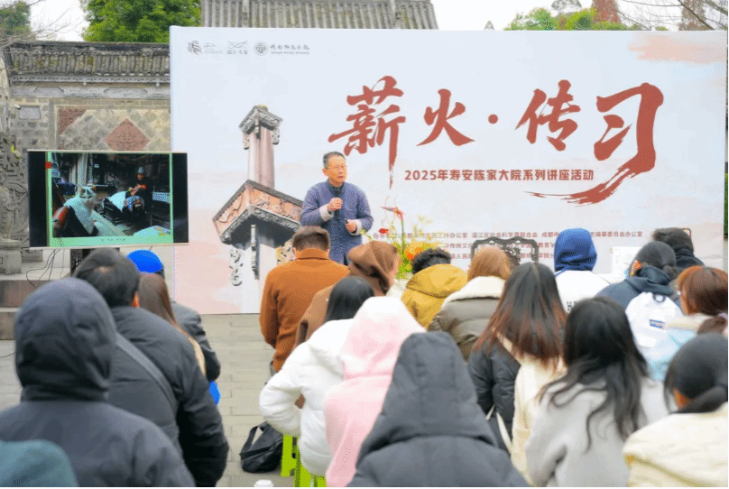 随后,四川行政学院徐平教授带来《成都的那些老场镇》主题讲座。讲座现场气氛活跃,特别是留学生们对“赶场”这一民俗表现出极大兴趣。来自约旦的的留学生Qasim讲道:“徐教授图文并茂的分享,让我对‘赶场’这一传统习俗有了清晰的了解。那些生动的图片和故事,让我仿佛亲眼看到了场镇的热闹场景,感受到了成都深厚的生活气息。”