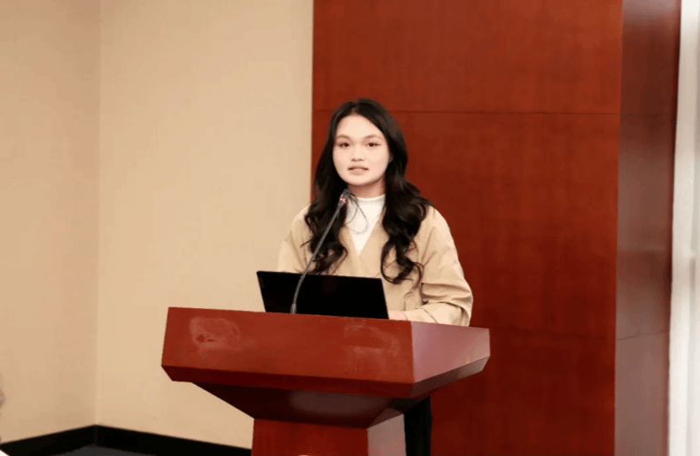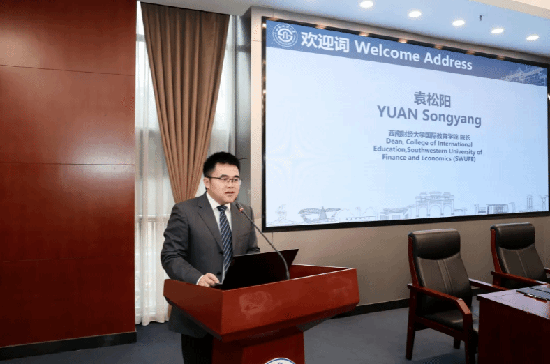2025级在校泰国籍留学生KAMONPORN CHARTSUTHIPONG作为学生代表发言。她深情分享了在西南财大学习生活的切身感受,感谢学校提供的优质教学资源、多元文化氛围和温暖关怀。她以亲身经历向泰国的学弟学妹们推荐402cc永利官网,期待更多泰国学子前来深造。