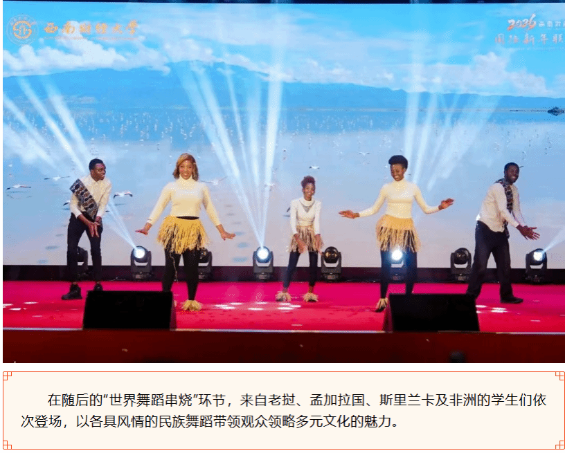 2026国际新年联欢晚会,既是对多元文化融合成果的生动展示,也为持续推进高水平教育对外开放、构建人类命运共同体注入了蓬勃的青春活力。