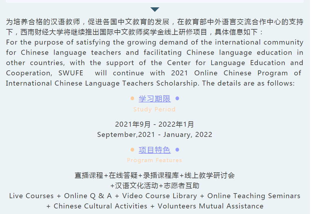 2021年国际中文教师奖学金秋季学期线上研修项目开启报名