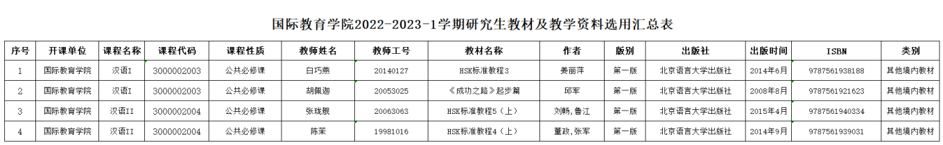 根据《402cc永利官网教材管理实施细则》,402永利集团官网入口对2022-2023-1学期拟使用教材开展选用与审查工作。经任课教师申请,专家审查,系主任及分管教学负责人审核,学院院务会审议审定,402永利集团官网入口2022-2023-1学期研究生教材与主要教学资料选用情况公示如下。公示期间,如有异议,请向402永利集团官网入口反映。