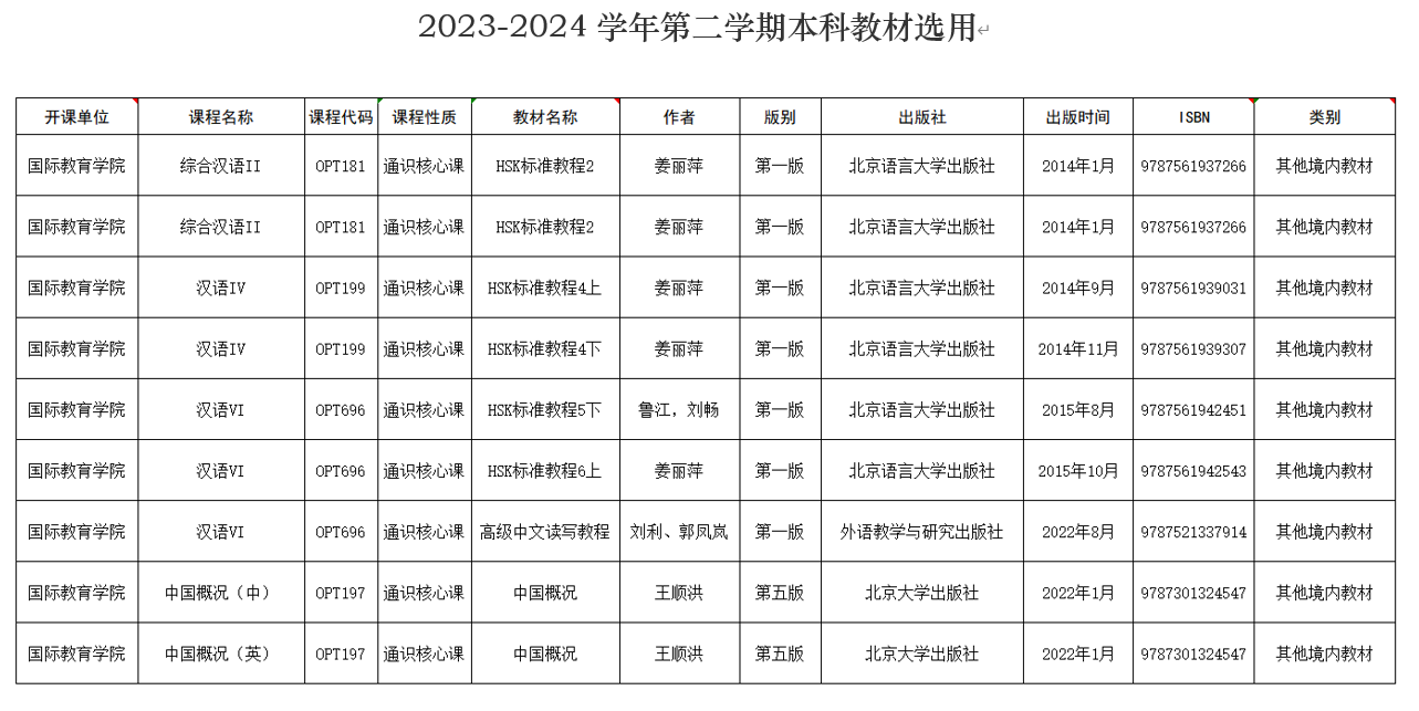 关于2023-2024学年第二学期本科教材选用情况的公示