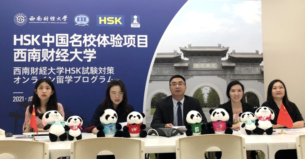 On June 12th 2021, the HSK Experiencing China's Leading Universities Program's(Session II)opening ceremony was held online. Chinese Testing International Co., Ltd and Japan Youth Development Association co-hosted this program in which all classes and activities are organized by the Southwestern University of Finance and Economics(SWUFE).