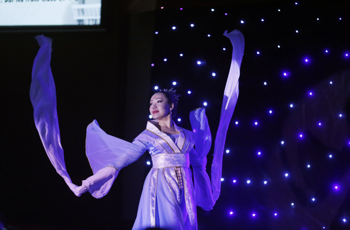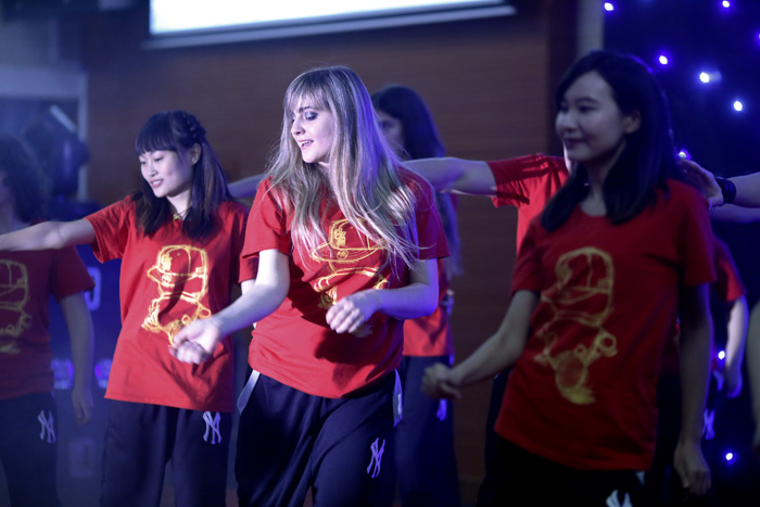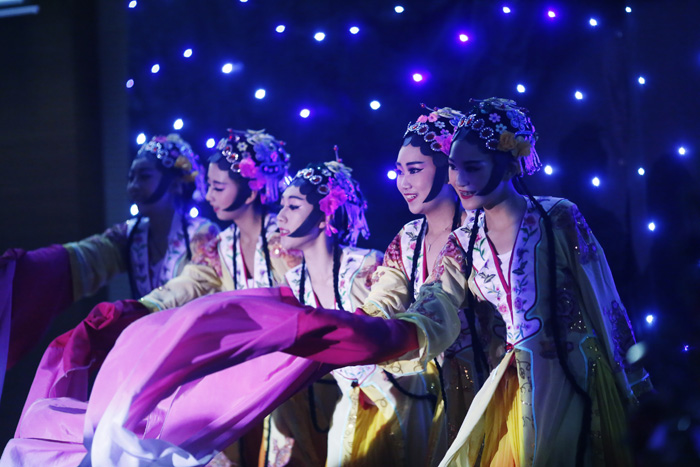 At seven o’clock, the party began in a warm atmosphere of jubilation. Four hosts brought a relaxed atmosphere to the entire evening with their humor language and quick response. The choreographed,fascinating programs have attracted the audience deeply. You can see traditional Bhutan dance、passionate African dance 、the chorus of “Little Apple”,and even the excellent B-box performance . . . The traditional dance offered by the university art troupe gave the audience a taste of the extensive and profound Chinese culture.