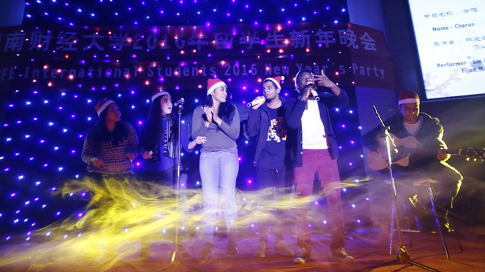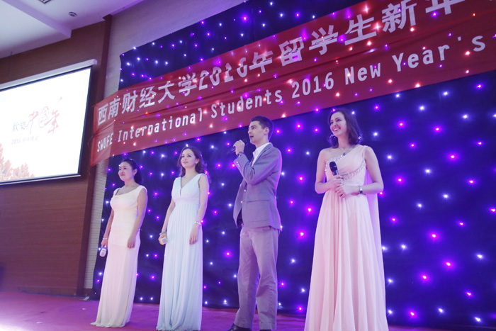 SWUFE International Students 2016 NewYear's party was held by the College of International Education and IFC on 16thDecember, 2015 (Wednesday) in the Student Activity Center, Liulin Campus. The theme of the party is to celebrate the coming New Year. The exquisite decoration and wonderful programs from five continents brought a lively celebration of NewYear feast. The show attracted most of the international students and Chinese students participating with enthusiasm.
