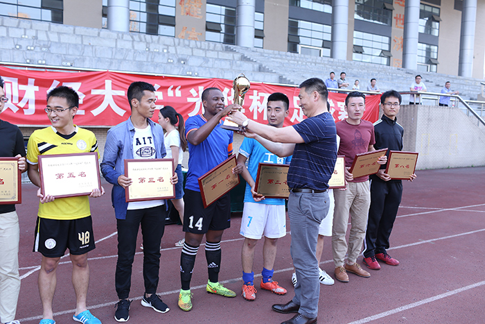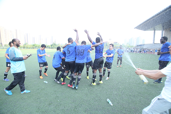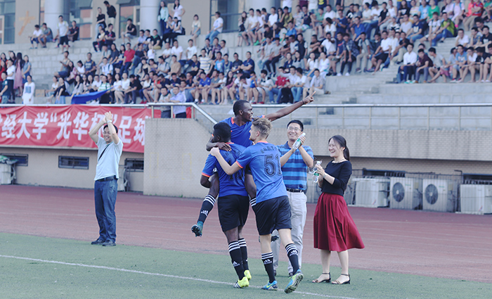 The crowd roared, and cheerleaders gathered all their strength to support the team. Henry's goal broke the situation and championship was just around the corner. With two-point advantage already, Haq scored the final ball of the "Guanghua Cup" and finally, we ended the 2016 "Guanghua Cup" football match with the glory of championship .
