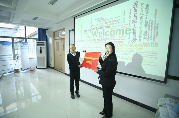 Following the welcome address, Dean of CIE Prof. Liang Ting awarded the certificate and scholarship to the THUONG PHAT TANG, the student who got Outstanding International Students Scholarship from Chinese government.