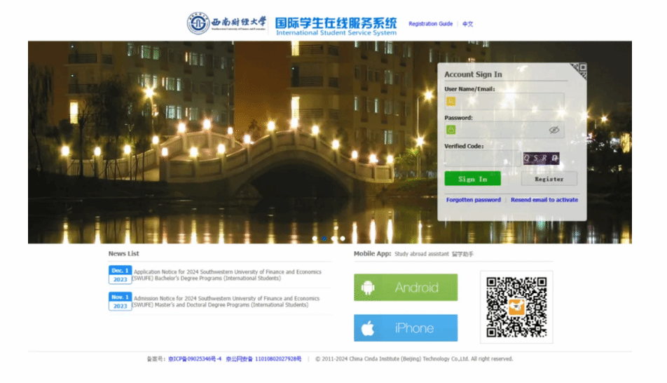 Submit online application at SWUFE International Students Service System (http://swufe.17gz.org), and pay application fee.