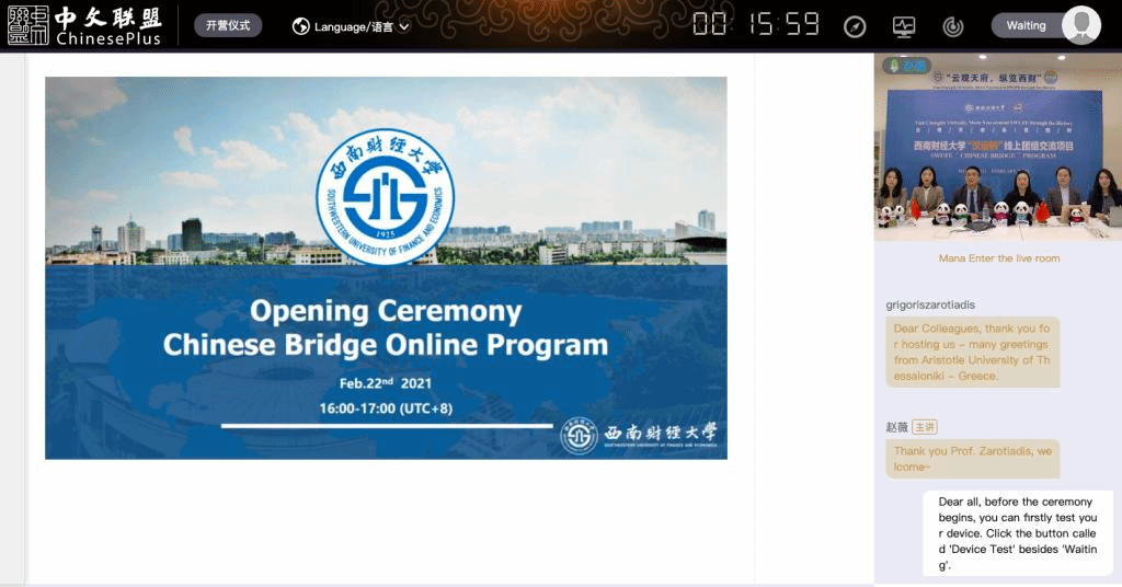2021年3月12日下午,由教育部中外语言交流合作中心主办、402cc永利官网承办的“云观天府,纵览西财”——“汉语桥”线上团组交流项...